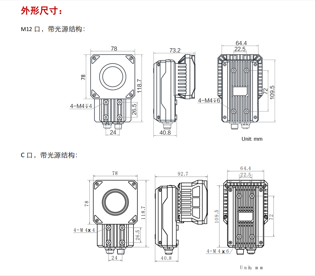 选用6MP高性能卷帘快门Sensor,图像质量优异内置深度学习读码算法,可适应多种复杂工况,鲁棒性强提供多种镜头接口,可选机械调焦镜头,自动完成对焦,调试简便支持打码评级功能,可选评码质量标准有ISO15415,ISO15416,IS029158支持 TCP/IP、Serial、FTP、PROFINET、Ethernet/IP、MELSEC、Fins 等通讯协议集成分路可控照明模块,选择多样化